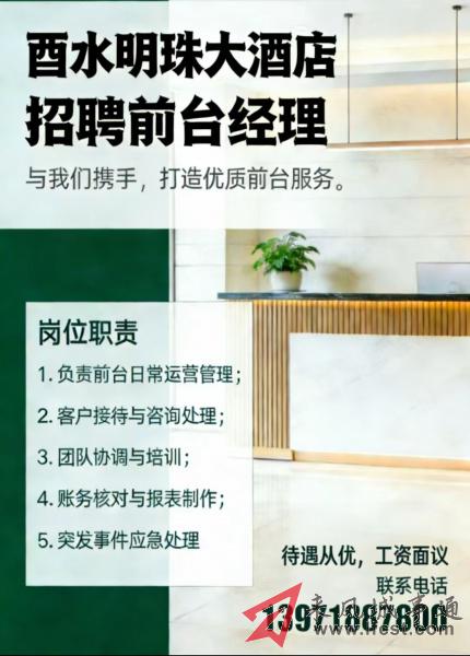愿与你并肩,让每一次宾客抵达都成为美好开端 联系我时,请说是在来凤城事通看到的,谢谢!